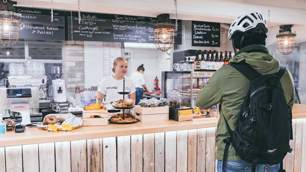 Suosimme valikoimissamme kotimaisia lähi- ja pientuottajia. Tarjolla on aina myös kunnon valikoima gluteenittomia ja vegaanisia vaihtoehtoja. Voit nauttia juomasi ja ruokasi paikan päällä tai napata matkaasi.