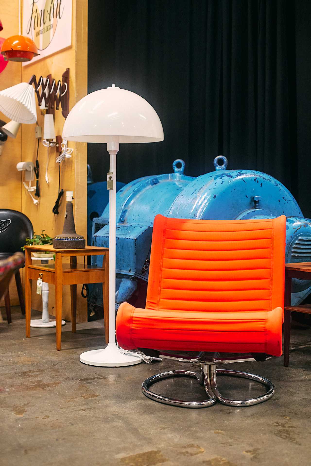 Myynnissä on mm. 1920-1980-lukujen kalusteita, valaisimia, lasia, keramiikkaa, koruja, POP-"antiikkia", vintage-vaatteita ja -asusteita, sisustustekstiilejä, julisteita, postikortteja, lehtiä, kirjoja, leluja, levyjä, vintage-audiolaitteita, ja paljon muuta - pallomekoista pastilleihin ja tattikulhoista tynelleihin!