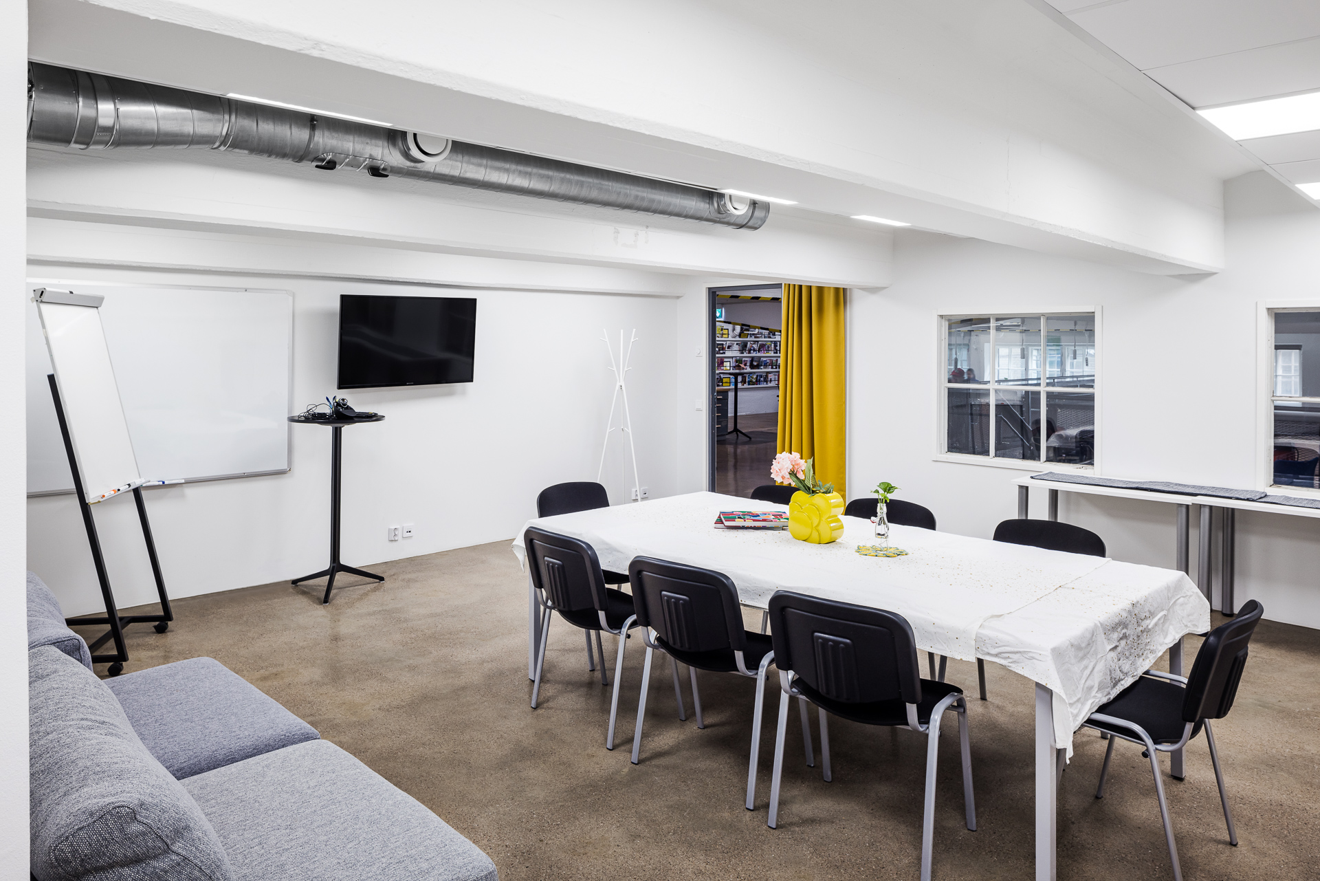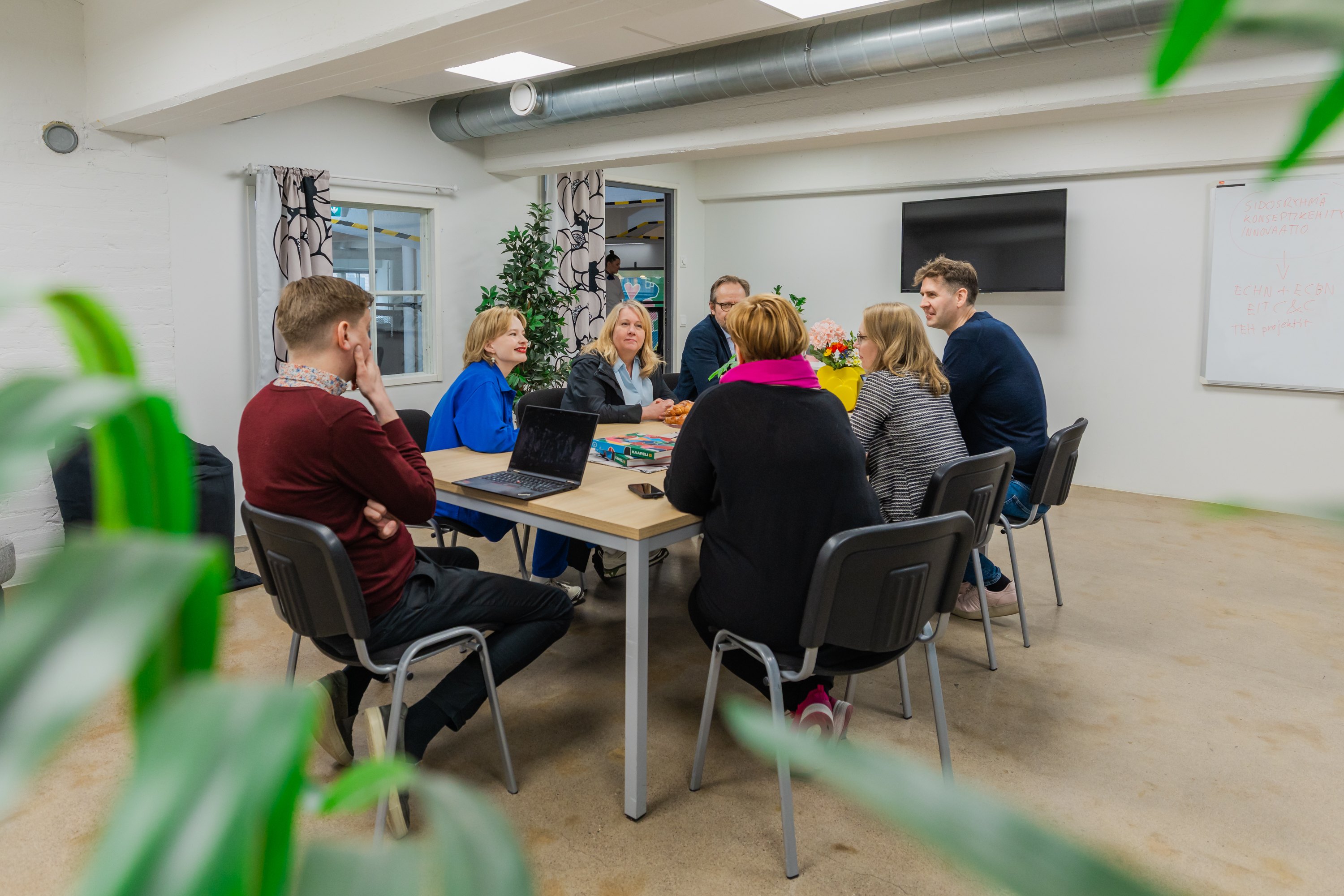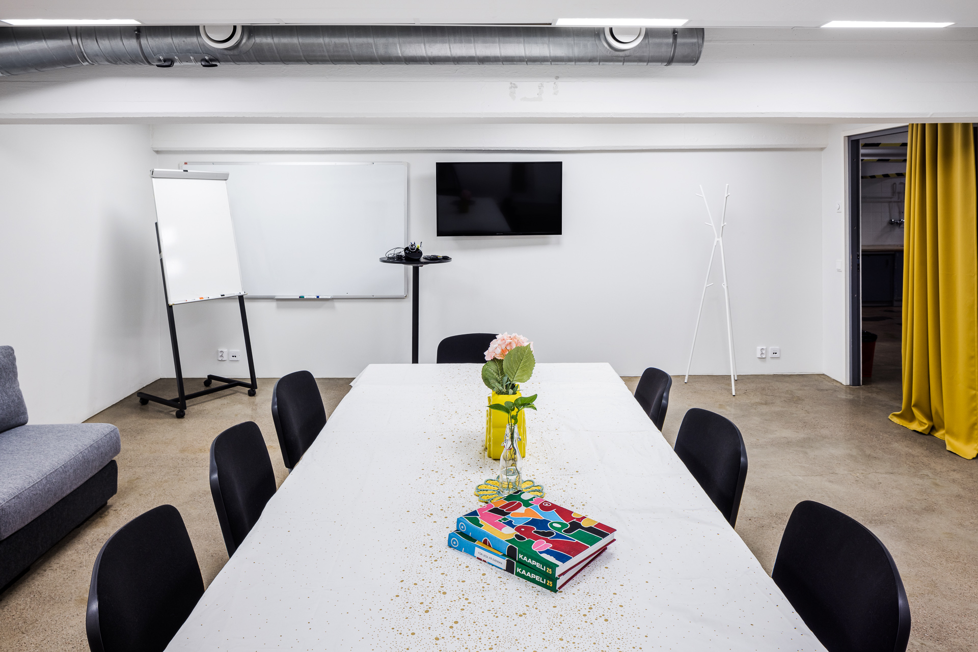 Tiloista löytyvät niin flat screen -näytöt kuin konferenssikamerat, tussitaulut, tussit ja kynät, fläppitaulut sekä näppärät tuolit ja pöydät, joita voi siirrellä vapaasti. Henkilökunta opastaa tilojen käytössä ja on paikalla koko vuokrausjakson ajan.