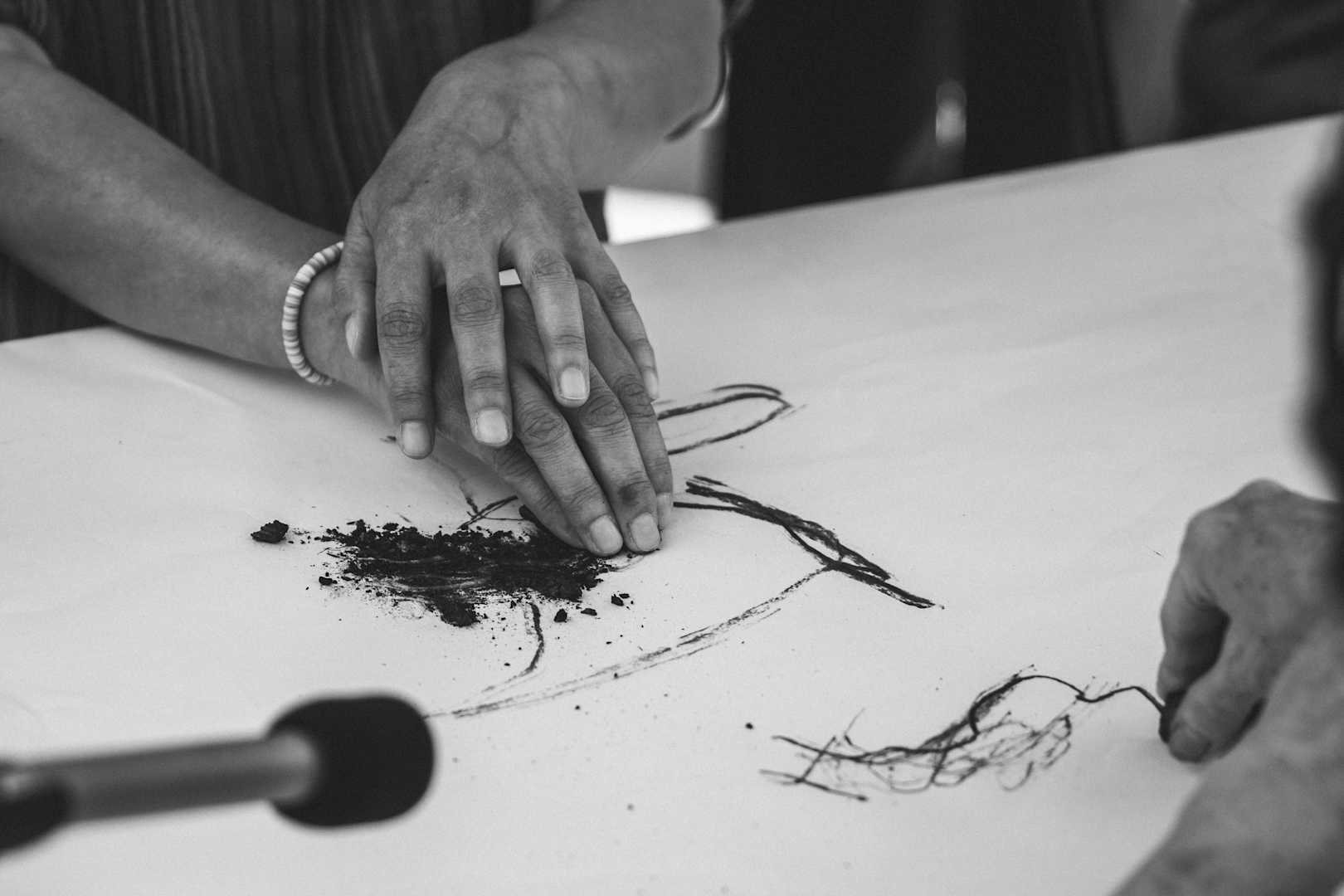 Millaisia ovat tapamme katsoa, tapamme koskettaa ja kuinka tutkia siitä jäävää jälkeä? Millaista yhdessäoloa ja tiloja yhdessä piirtäminen luo?