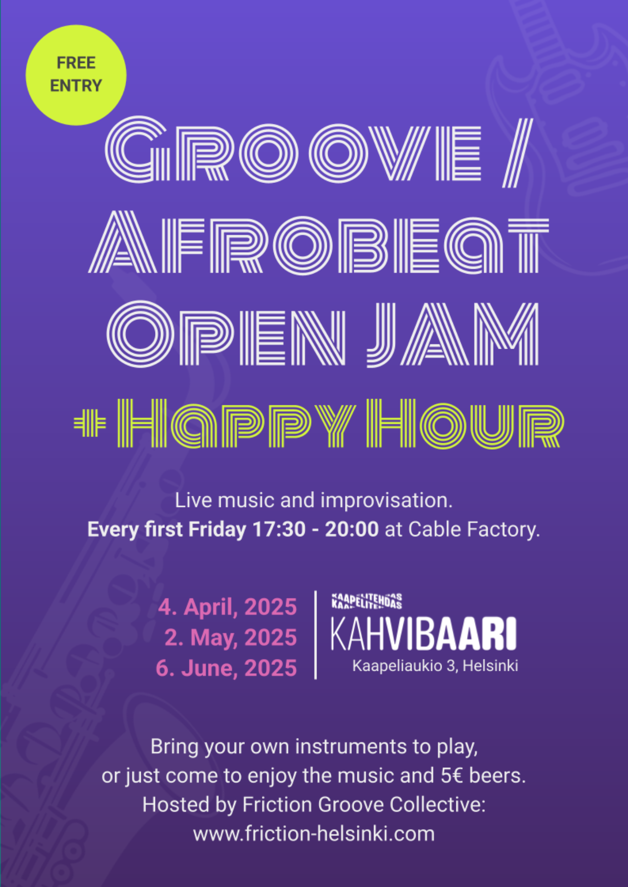 Groove & Afrobeat Jam session on Friction-nimisen bändin pitämä kaikille avoin jamittelusessio!