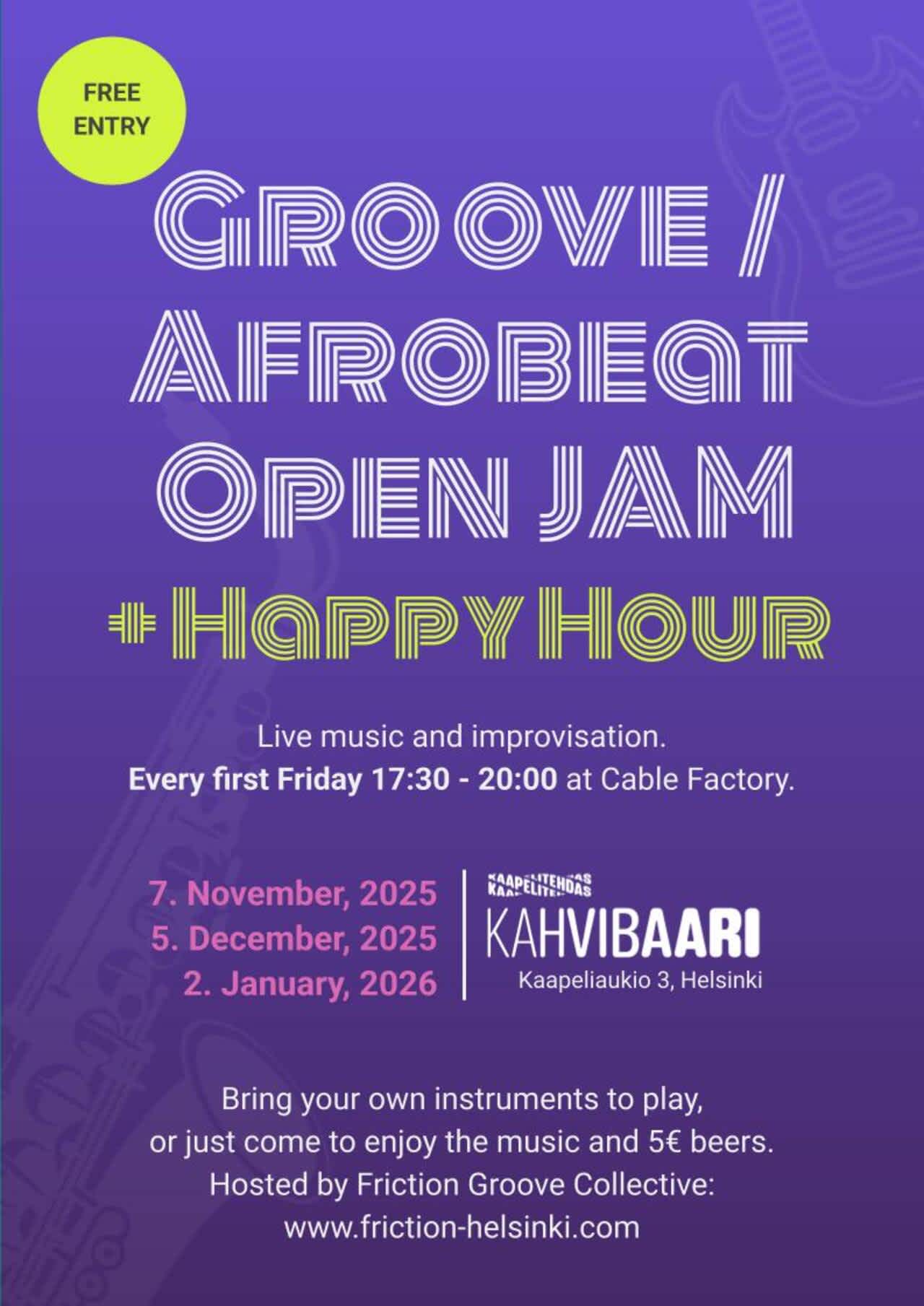 Cable Jam Monthly on Friction-nimisen yhtyeen pitämä jammailuilta, johon kaikki ovat tervetulleita soittamaan musiikkitasosta riippumatta!