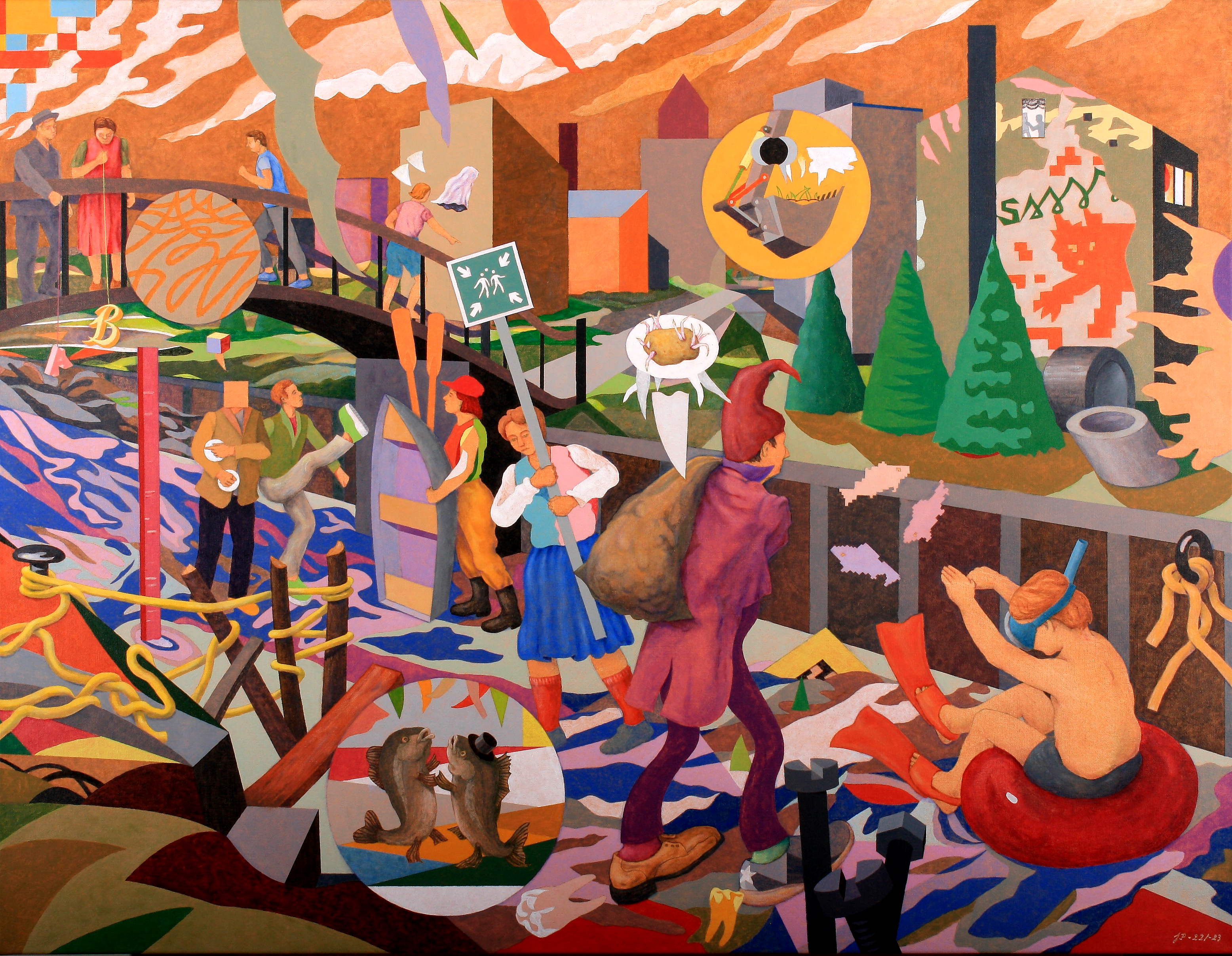”Alkuaineet”-taidenäyttelyni koostuu viime vuosien aikana tehdyistä akryylimaalauksista ja linopiirroksista. Näyttelyni nimi viittaa pyrkimykseeni ymmärtää tätä ihmeellistä maailmaa ja ihmisen elämisen ja olemisen logiikkaa, kaiken tarinallisuutta. Hyödynnän kuva-ajattelua ja kuvan tekemisen prosessia näissä pohdinnoissa. Taiteen tekeminen on minulle tutkimista ja tutkimusmatkailua, näkyväksi tekemistä.