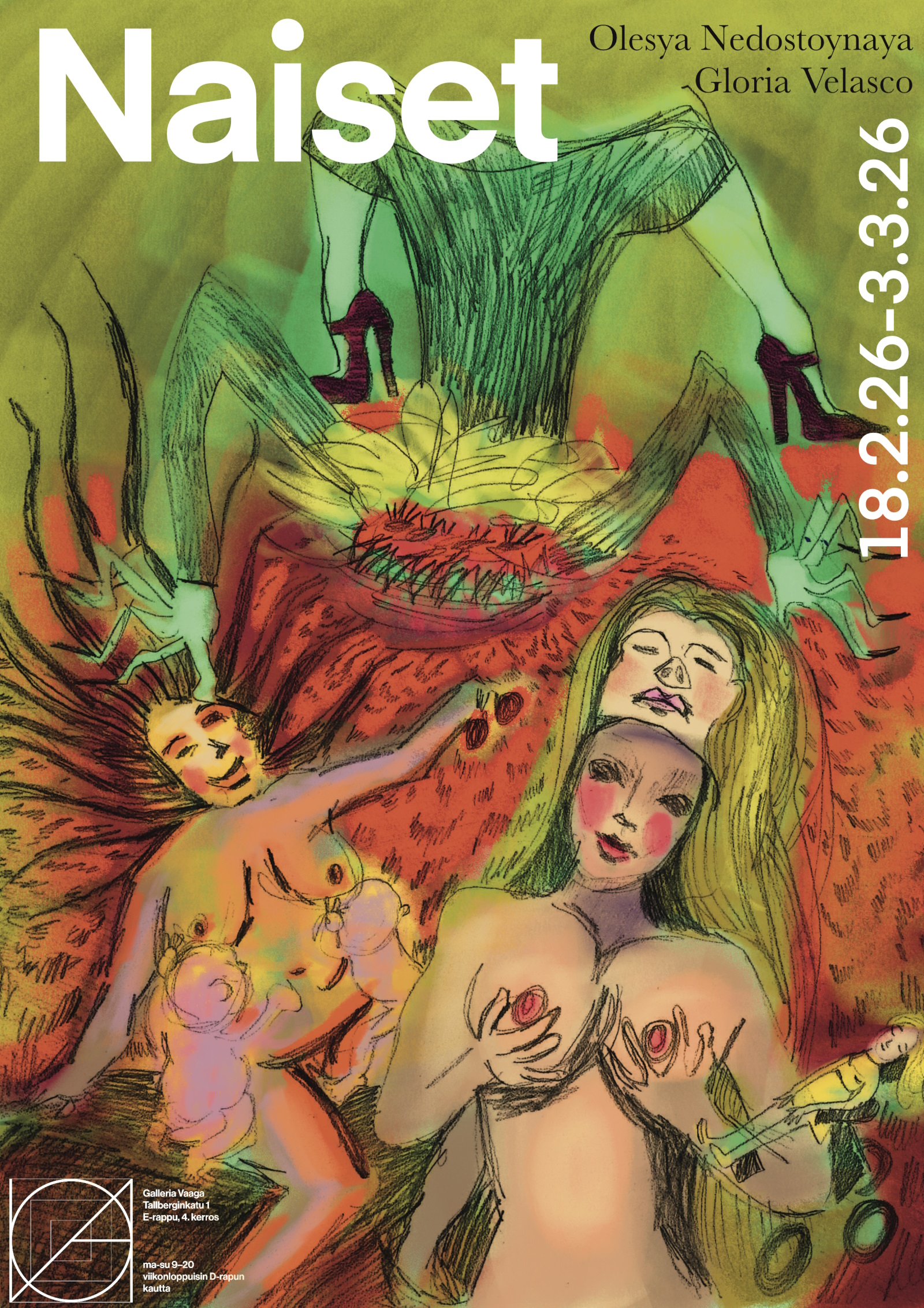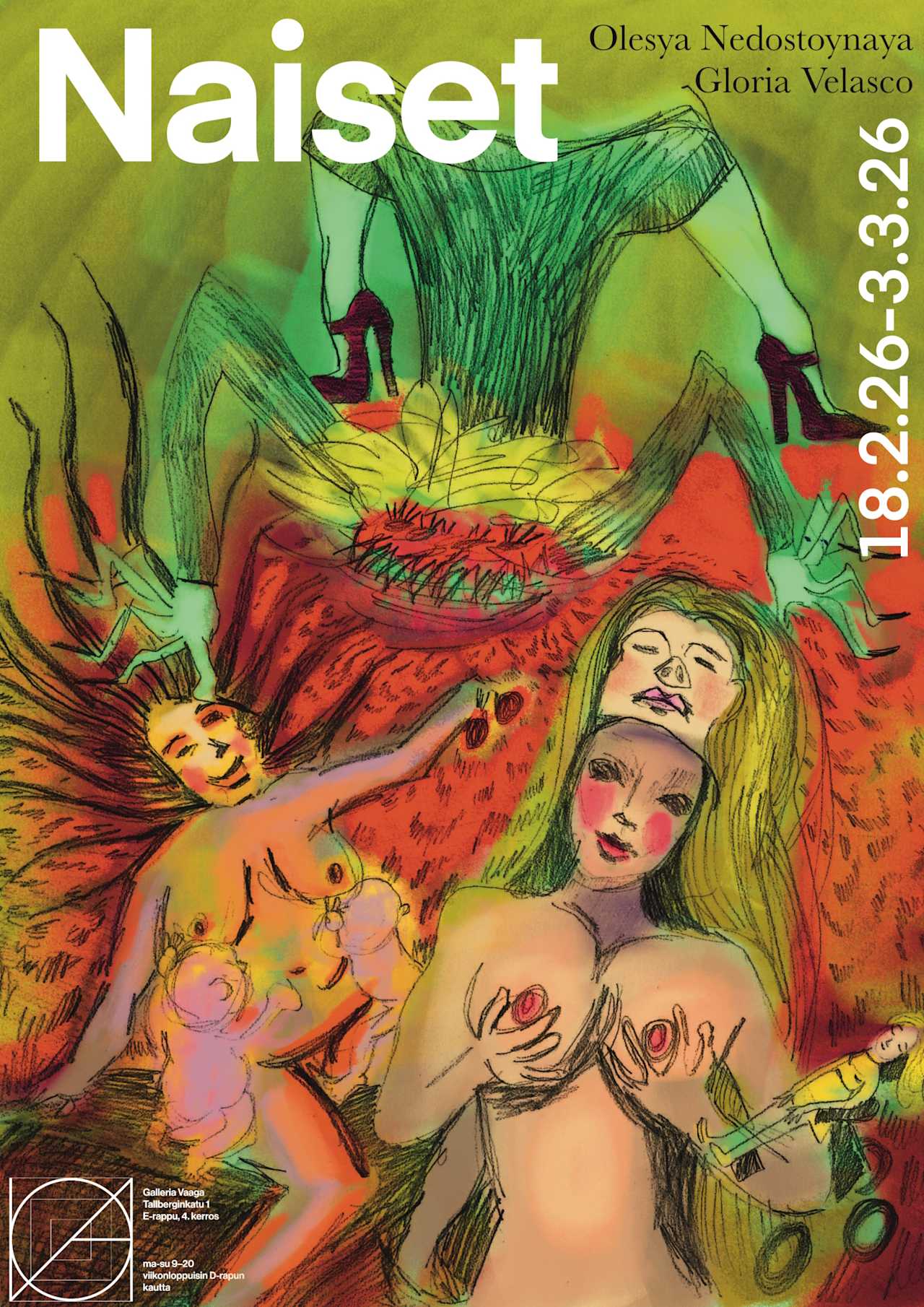 Olesya Nedostoynayan ja Gloria Velascon näyttelyssä on esillä piirroksia, maalauksia ja luonnoksia, joissa naishahmot ovat pääroolissa.