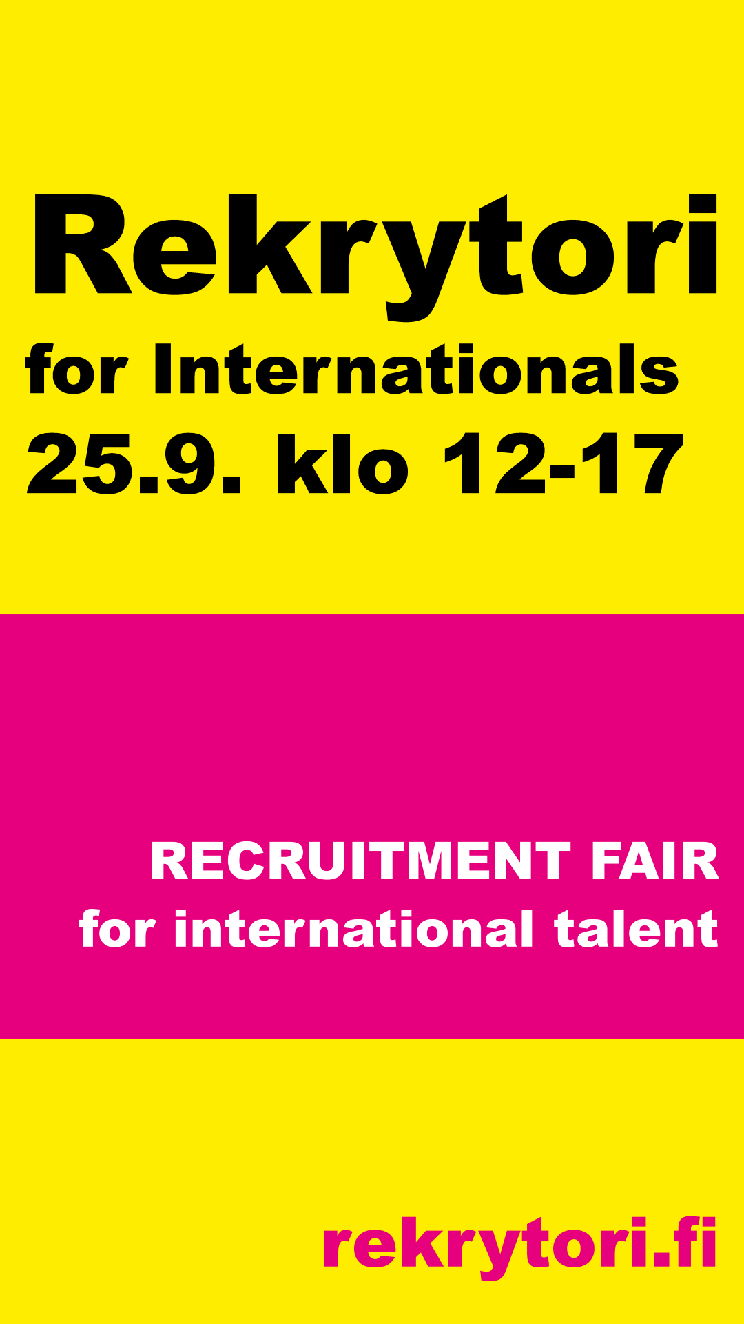 Welcome to Rekrytori for Internationals, a job fair especially for international talents. At the event, employers from different fields will present vacancies for positions requiring manual skills for academic expert and management positions. In addition, the event offers a wide range of counselling and guidance services for those looking for work.