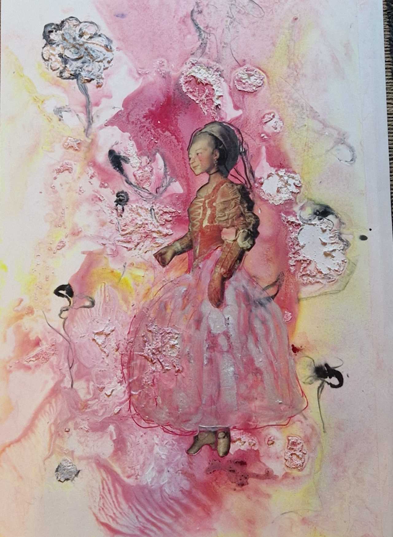 Näyttelyssä on mukana myös muutama akvarellikollaasi sekä luontoaiheisia abstrakteja, sekatekniikalla toteutettuja maalauksia.