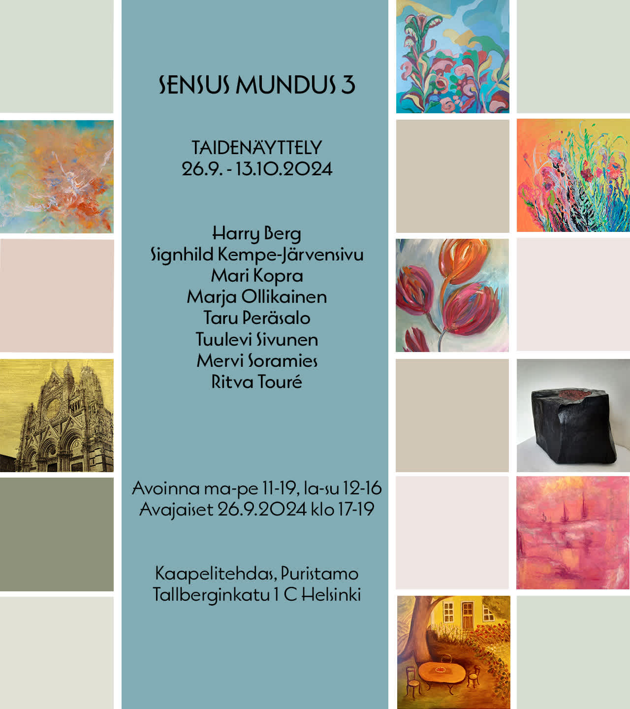 Sensus Mundus -TUNNE MAAILMA järjestettiin ensimmäisen kerran vuonna 2020. Järjestäjänä on ryhmä ammattitaiteilijoita ja nyt näyttelyssä ovat mukana kuvanveistäjä Harry Berg, kuvataiteilijat Signhild Kempe-Järvensivu, Mari Kopra, Marja Ollikainen, Taru Peräsalo, Tuulevi Sivunen, Mervi Soramies sekä Ritva Touré.