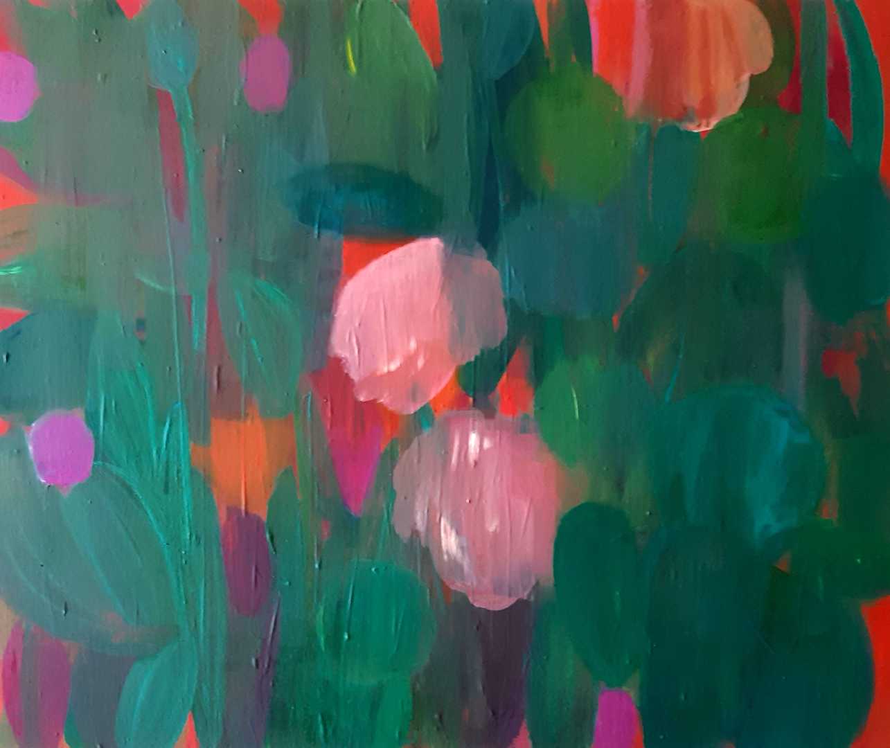 Minun puutarhani kasvaa maalauskankaille. Se on lähes abstrakti, tunnistettavia kasveja sieltä ei löydy.